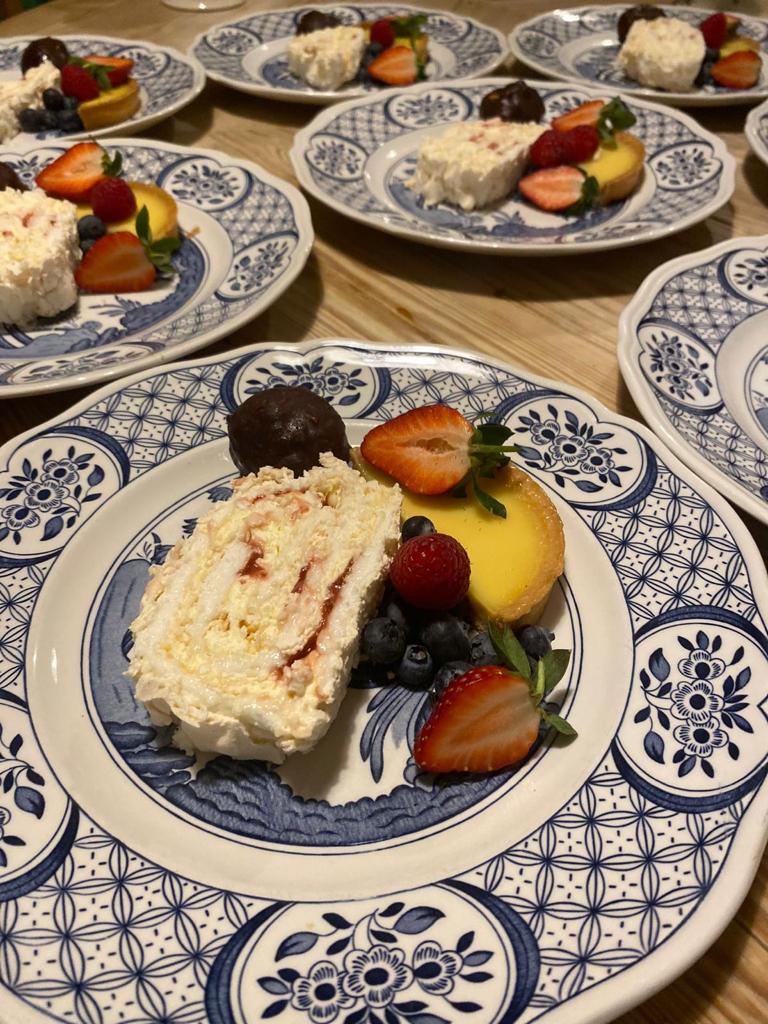 Sherry Trifle – Chocolate Trifle – Chocolate Profiteroles – Lemon Tart (GF) – Lemon Meringue Cheesecake – White Chocolate & Raspberry Meringue Roulade (GF) – Tiramisu – Various Fruit Crumbles -Sharing Platter of Cheesecake – Meringue – Wicked Chocolate Dessert – Raspberry Frangipane(GF) Various of other Options we would love to suggest